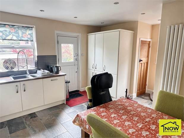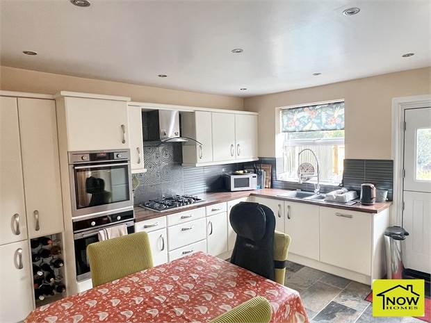 - 13' 9" by 13' 1" (4m 19cm by 3m 99cm), (excluding storage recess). Having a range of fitted wall and base units including a five burner gas hob, double oven and dishwasher. There is also tiled flooring, radiator, window to the rear and side and stable door onto the patio.