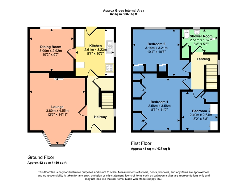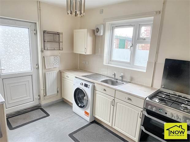 - 10' 8" by 8' 7" (3m 25cm by 2m 62cm), (). Having a range of fitted wall and base units including a sink. There is also a cooker and washing machine, radiator, window to the side and a door to the rear.