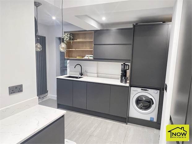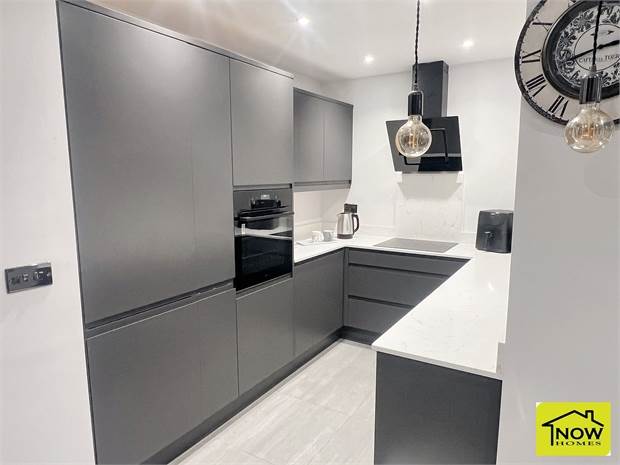 - 15' 7" by 6' 10" (4m 75cm by 2m 8cm), (). Having a contemporary range of fitted wall and base units incorporating an electric hob, electric oven, fridge freezer and quartz worktops. There is also a pull-out larder and a black sink.