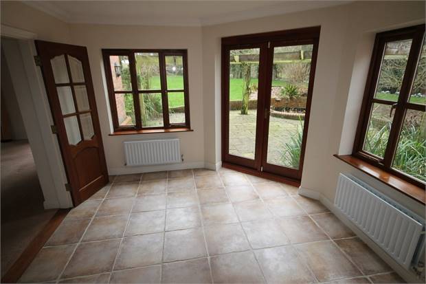 - 10'10" by 10'7" (3m 30cm x 3m 23cm). With tiled flooring, surrounding windows and double doors on to the patio. Opening through to the kitchen.