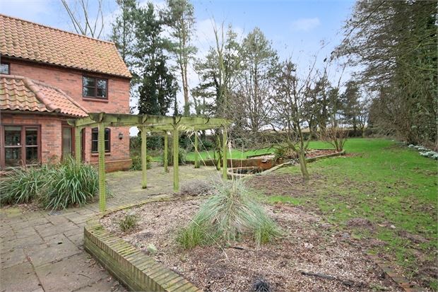 - Gated access leads to a parking area and double garage. The front garden is lawn with mature trees and this continues round both sides of the property. To the rear there is a large patio area with pergola over and a ornamental pond. This then leads on to a lawn with mature trees. The boundary to the North of the plot is flanked by a stream while the Southern side has open fields.