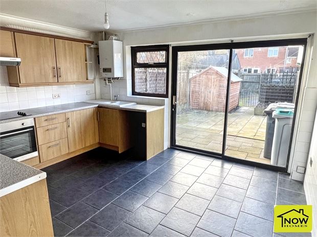 - 13'4" by 11'0" (4m 6cm x 3m 35cm). Having a range of fitted wall and base units incorporating a gas hob, electric oven and a one and a half bowl sink. There is also tiled flooring, combination boiler, window and patio door to the rear.